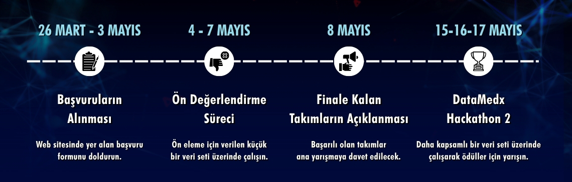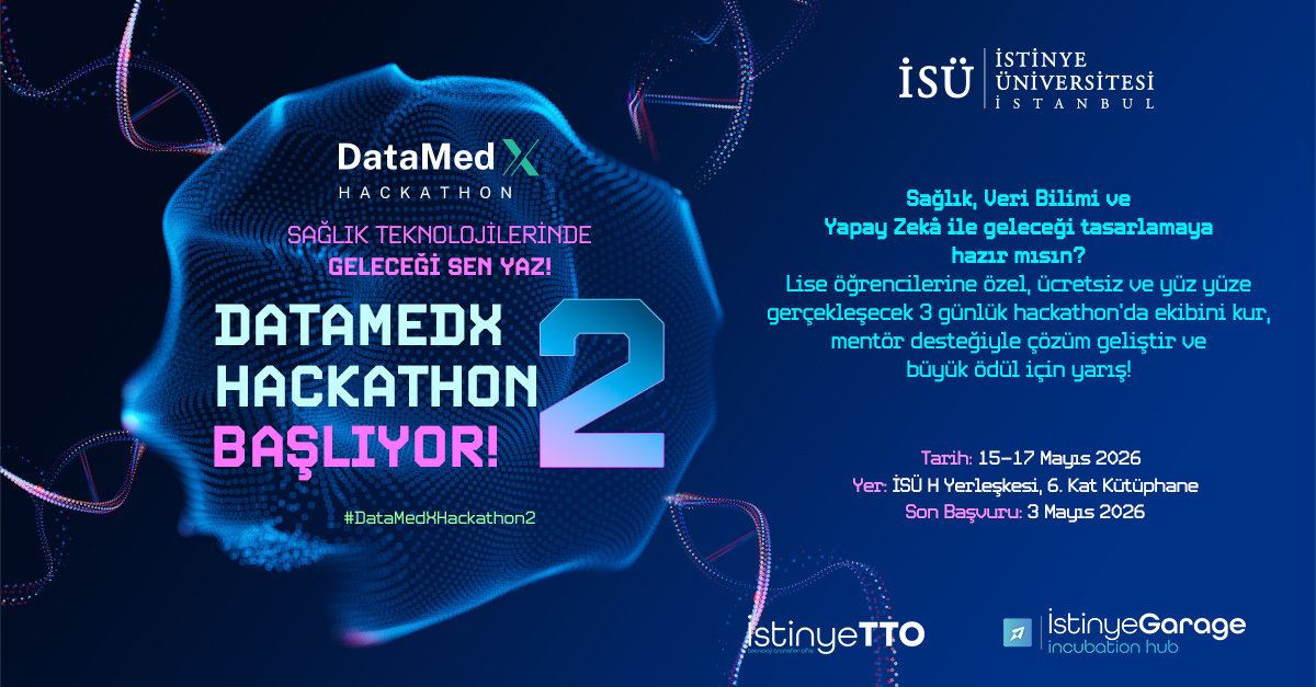 İstinye Üniversitesi DataMedX Hackathon 2 başvuruları 26 Mart 2026 tarihinde başlayacak ve 3 Mayıs 2026 tarihinde sona erecektir. Bu tarihten sonra yapılan başvurular değerlendirmeye alınmayacaktır.