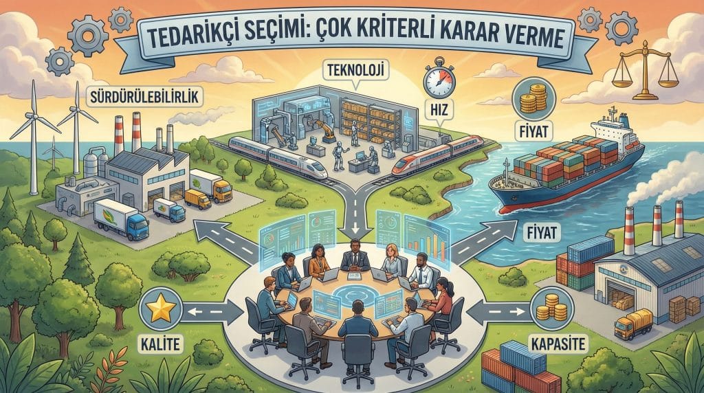 Fiyat, kalite, teslimat hızı ve güvenilirlik gibi performans göstergelerini tanımlar. Kararı etkileyen değişkenleri ağırlıklandırarak öncelik sırasına koyar.